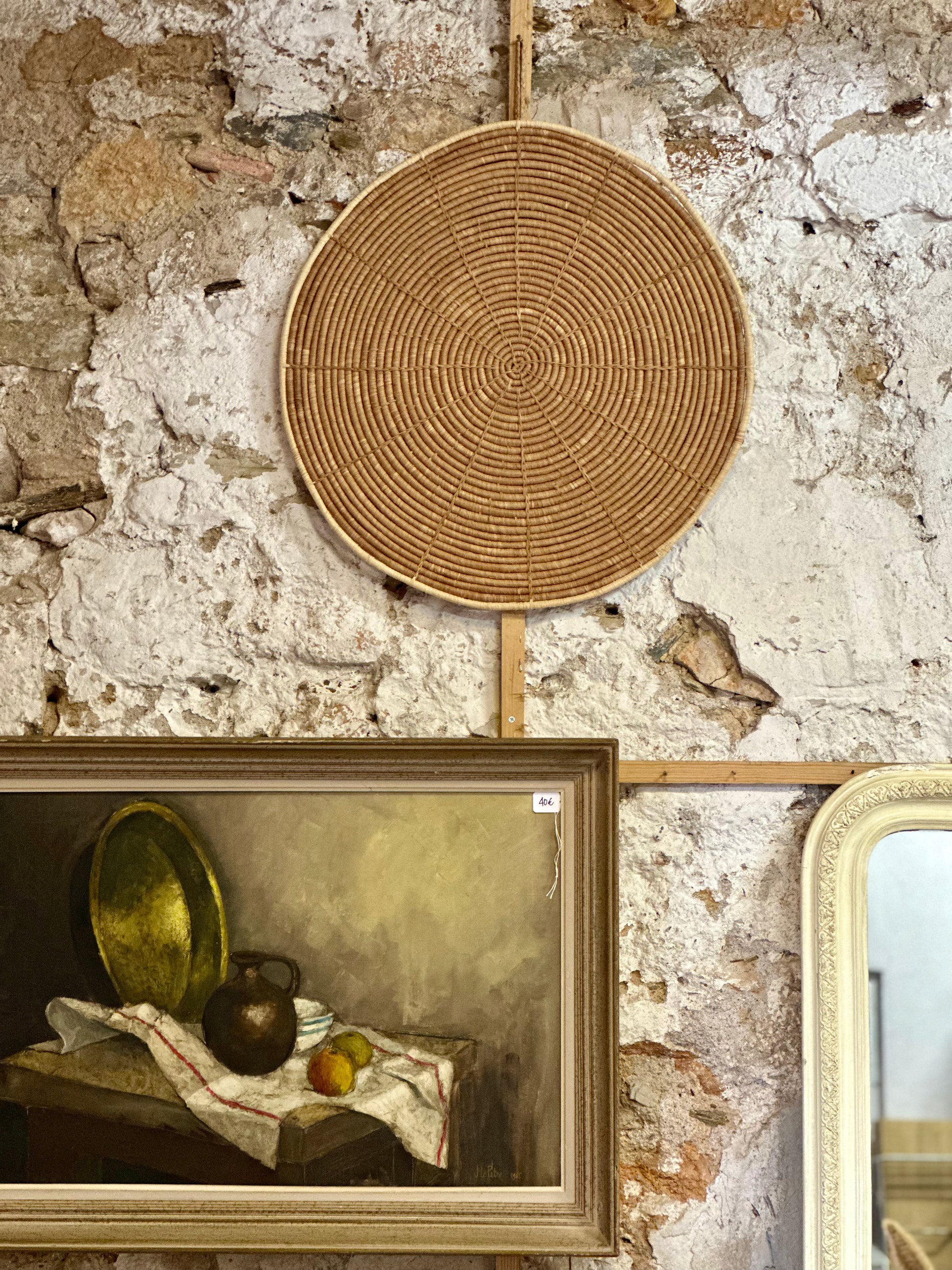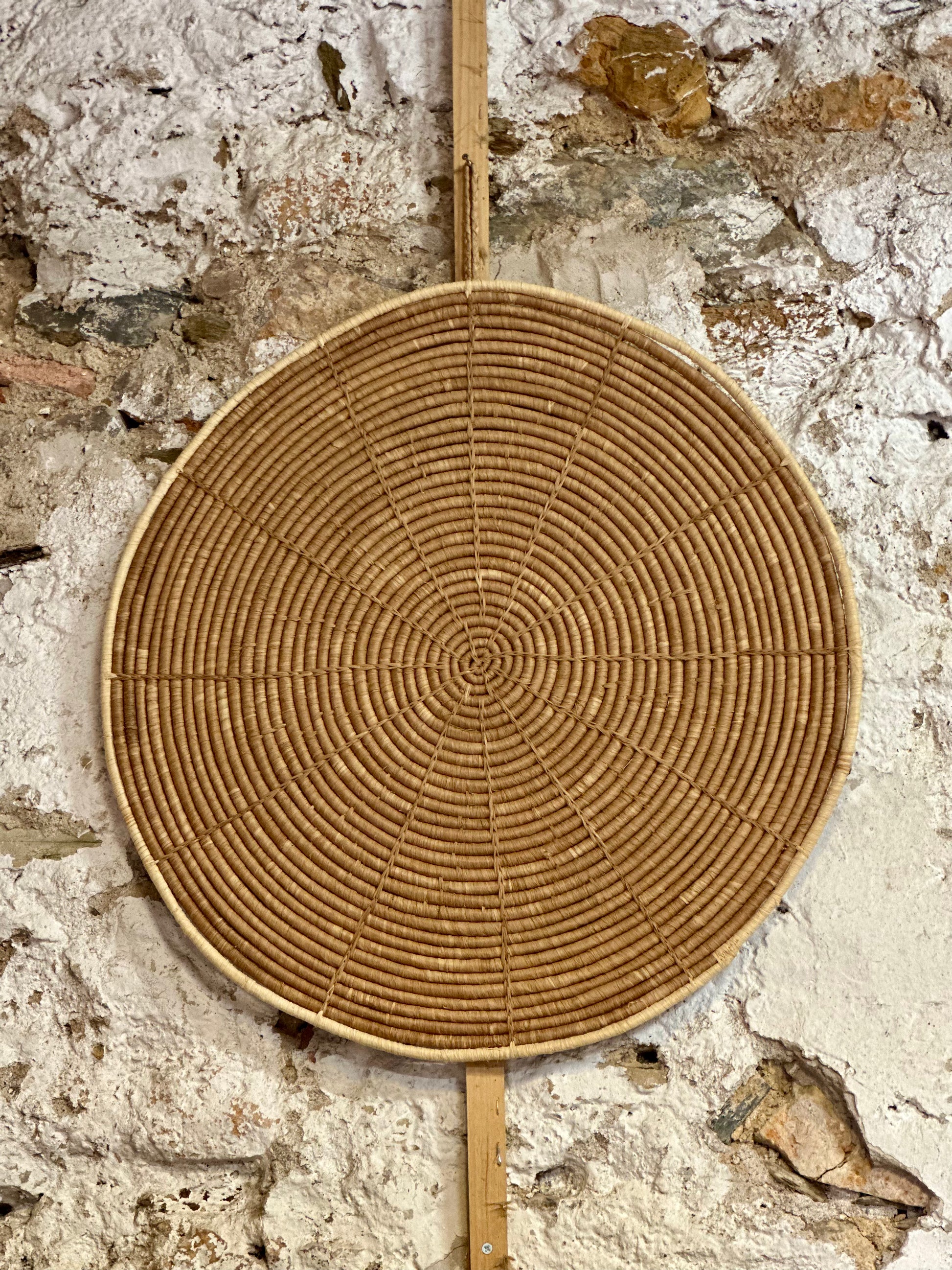 Travail artisanal. Petite anse en rotin permettant de l'accrocher.