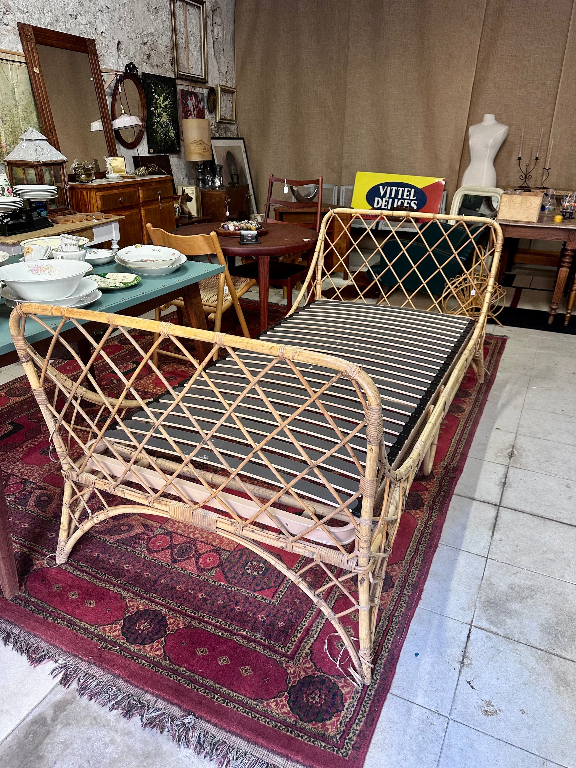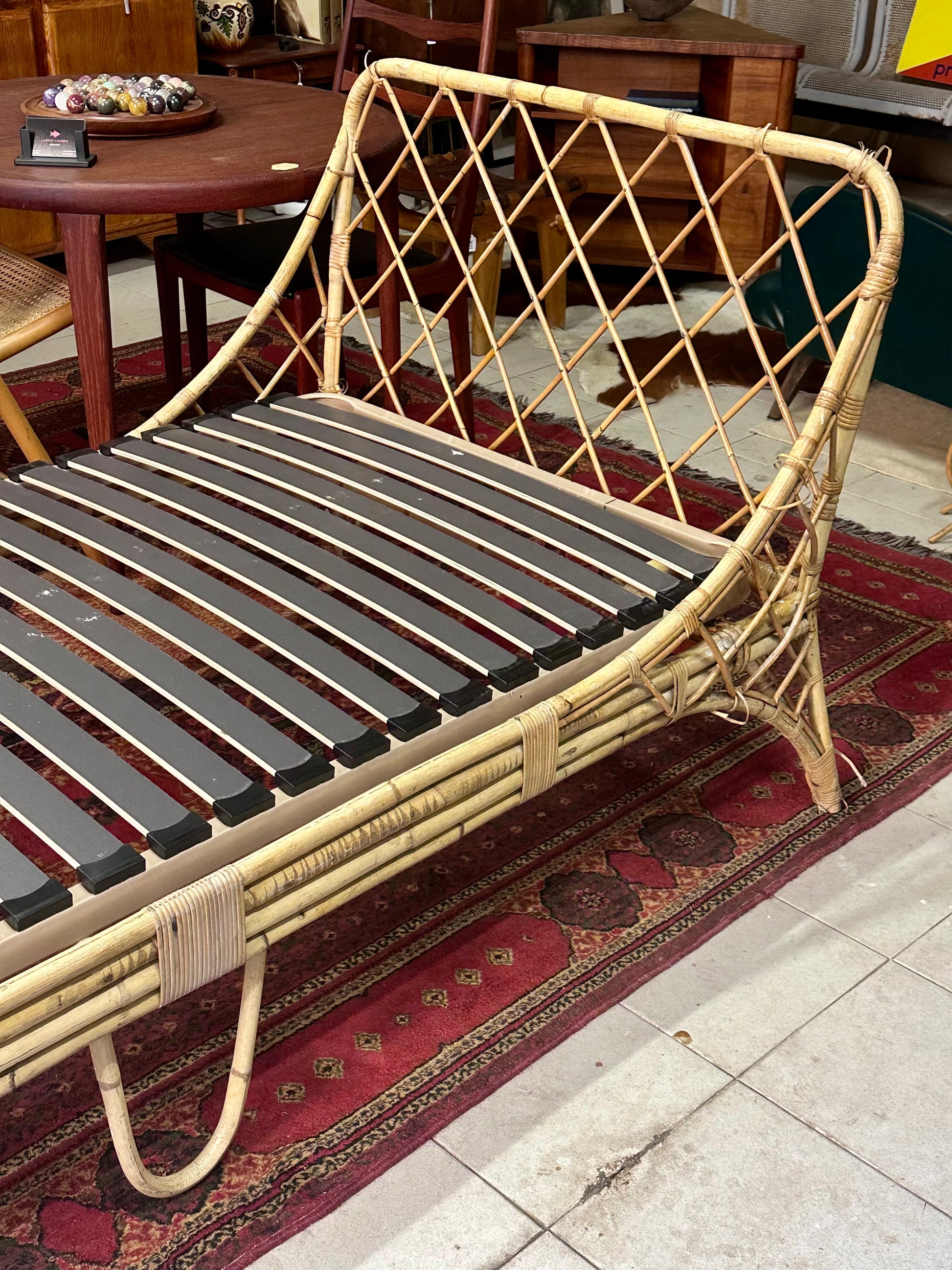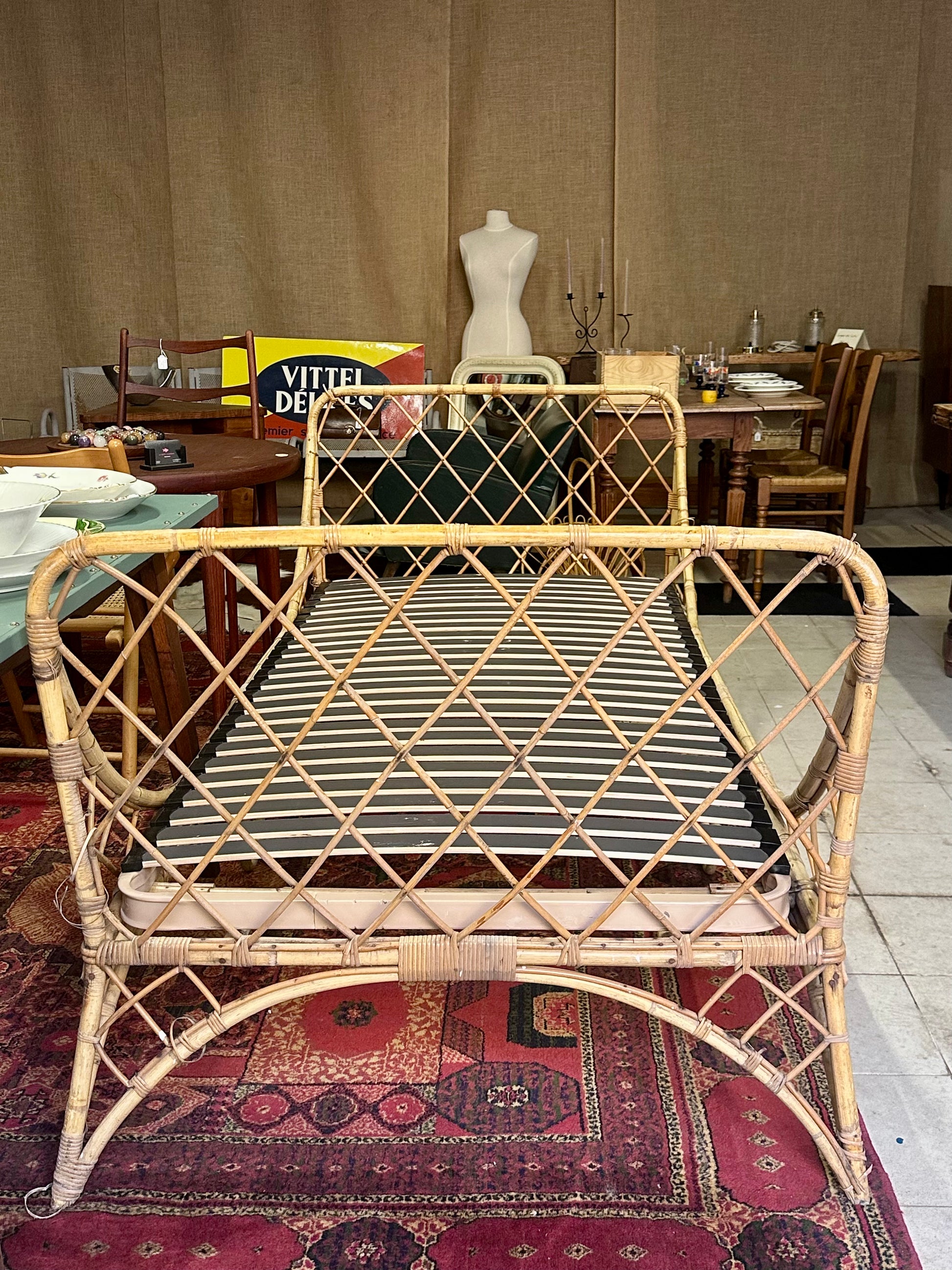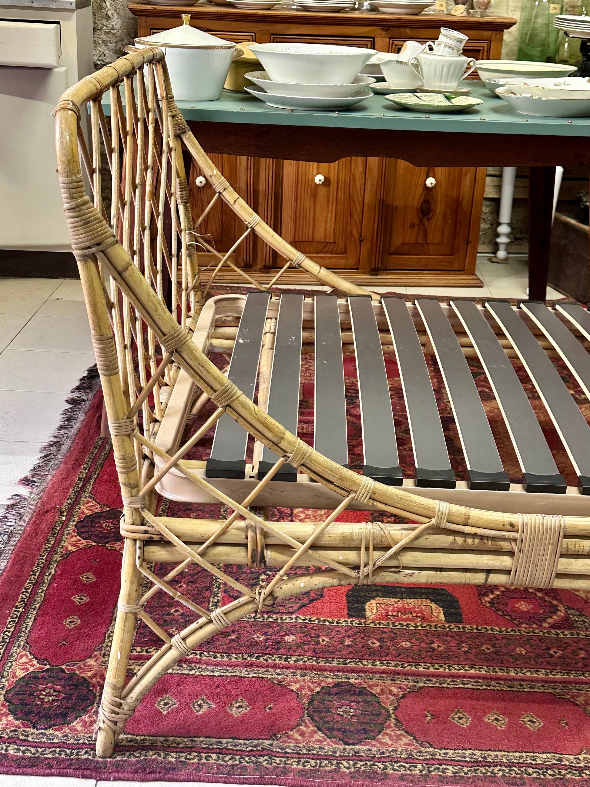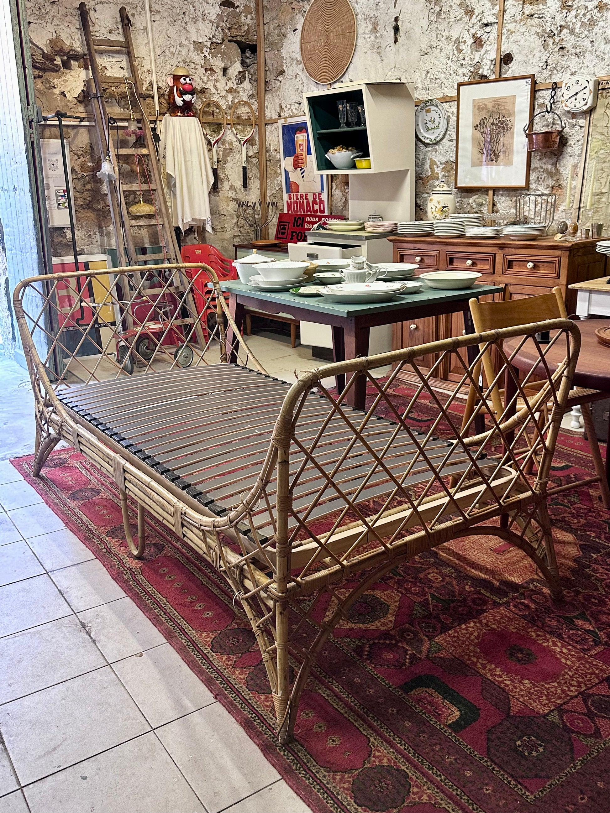 Lit 1 personne ou banquette, day-bed en rotin des années 70.