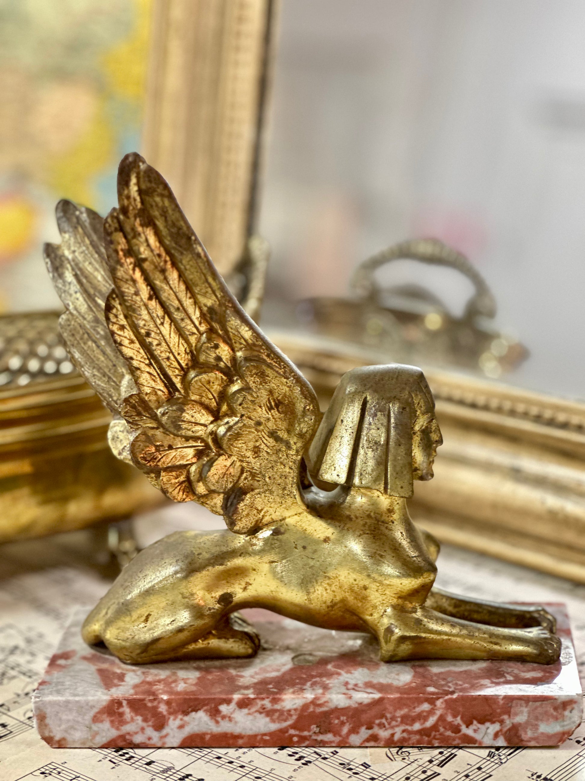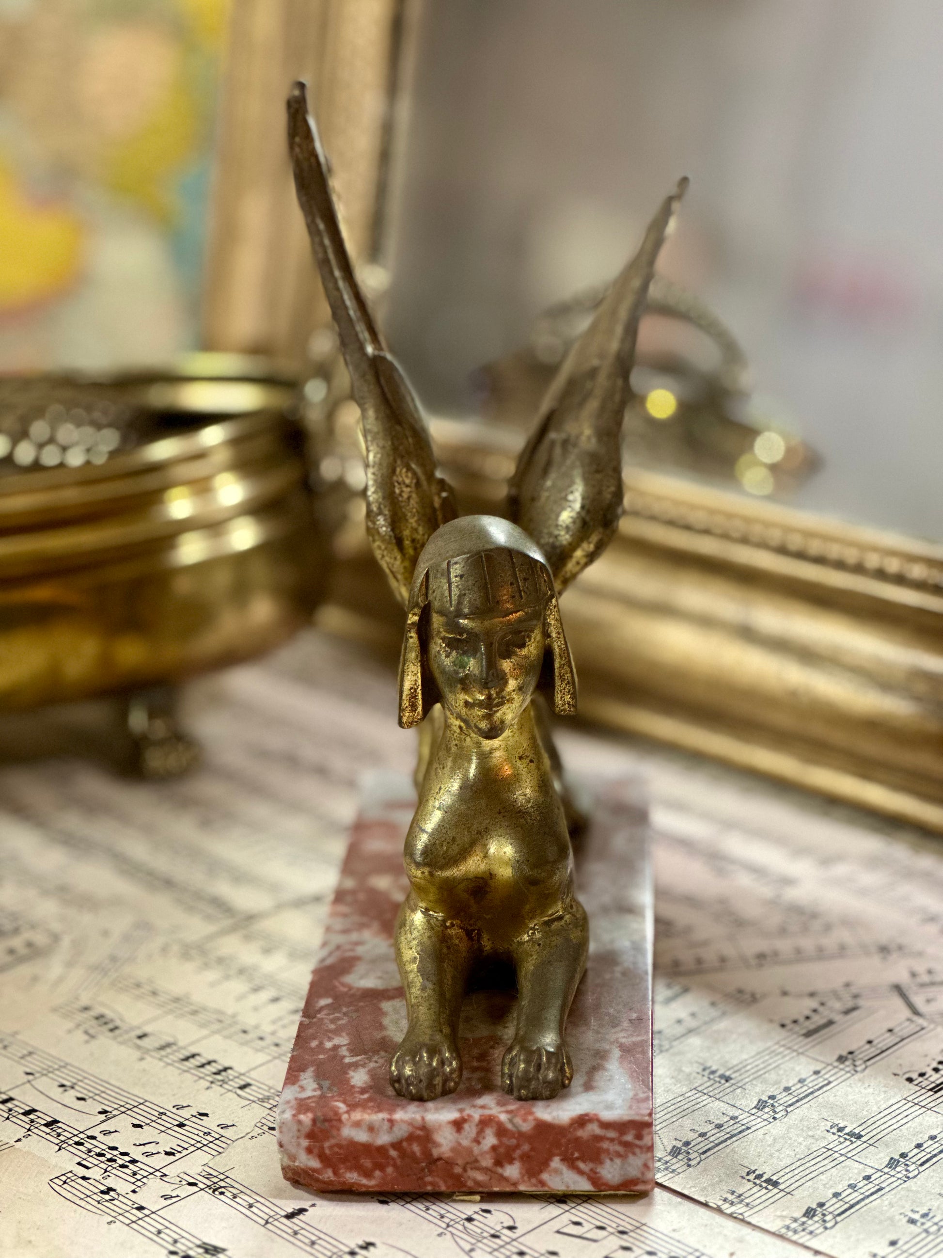 Statue de Sphinx en bronze sur marbre