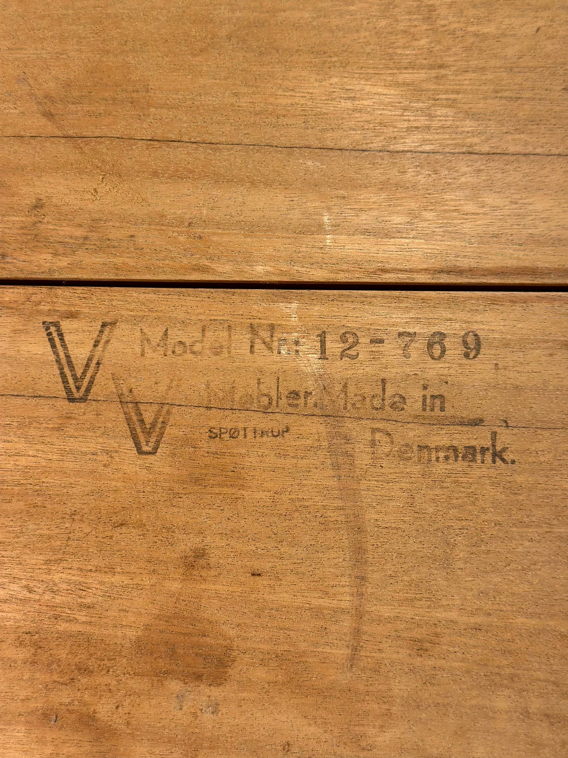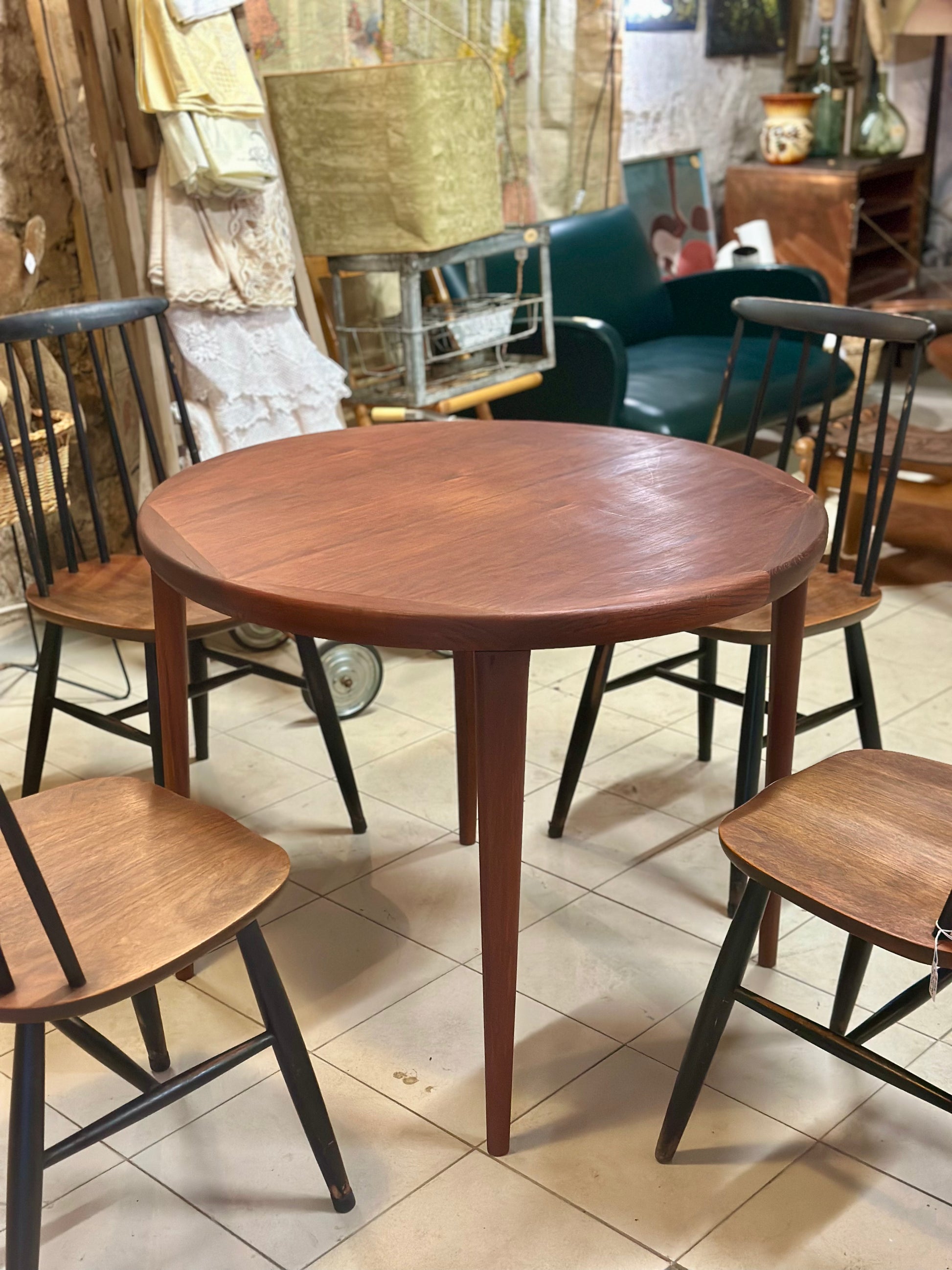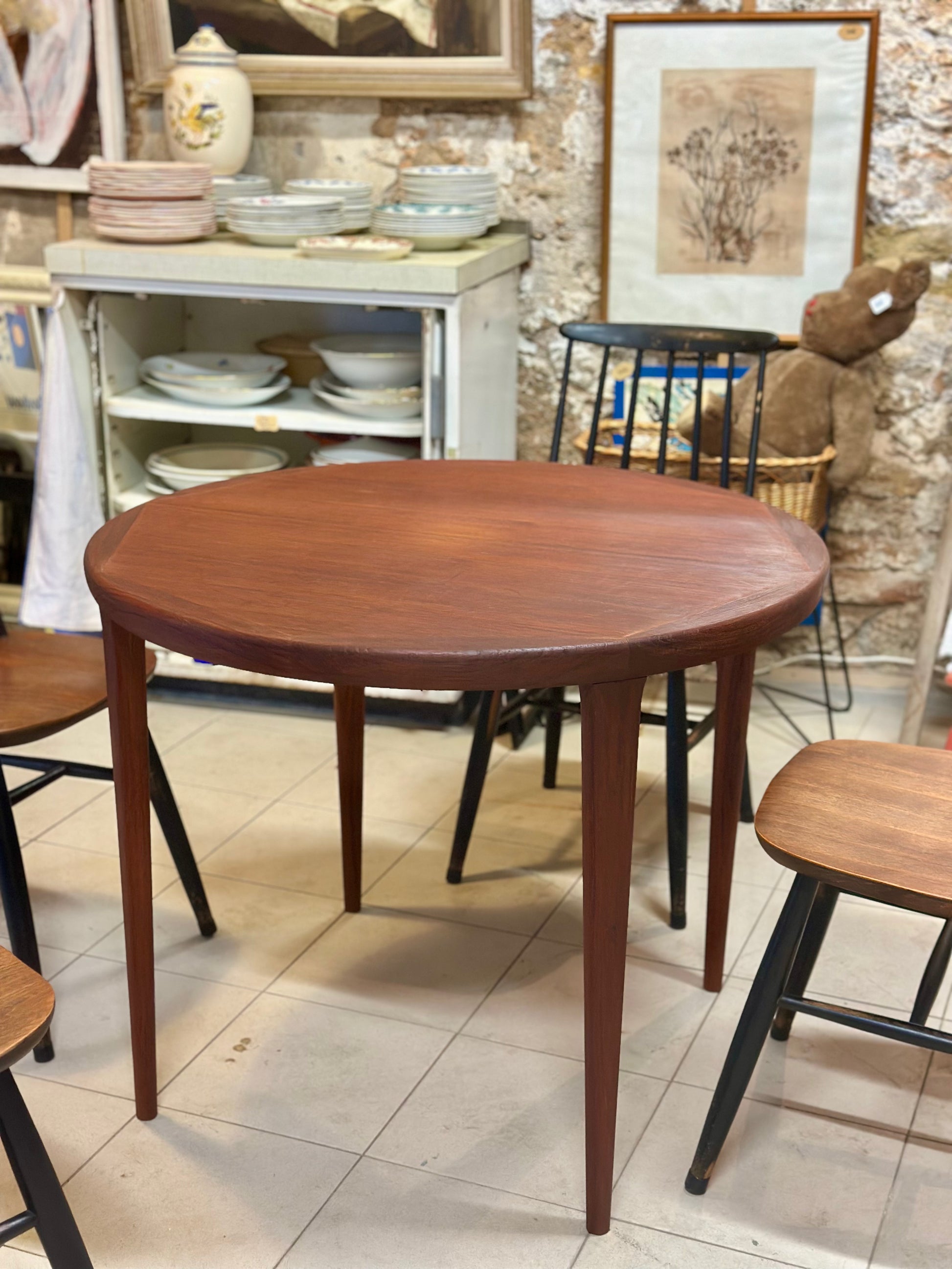 Table ronde en teck massif signée VV Møbler Denmark et numérotée.